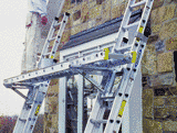 The Werner Long Body aluminum ladder jacks for stages up to 20-inch width enable the use of planks or stages between Type 1 or 1A ladders. Put the jacks a foot away from each end of the plank or stage them up to 20 inches wide, then use the clamps to hold the plank or stage together